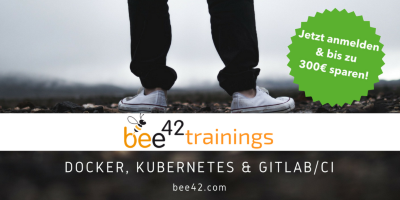 Im folgenden findet Ihr alle kommenden Termine der bee42 Docker, Kubernetes und GitLab/CI Trainings in Berlin, München und Essen.